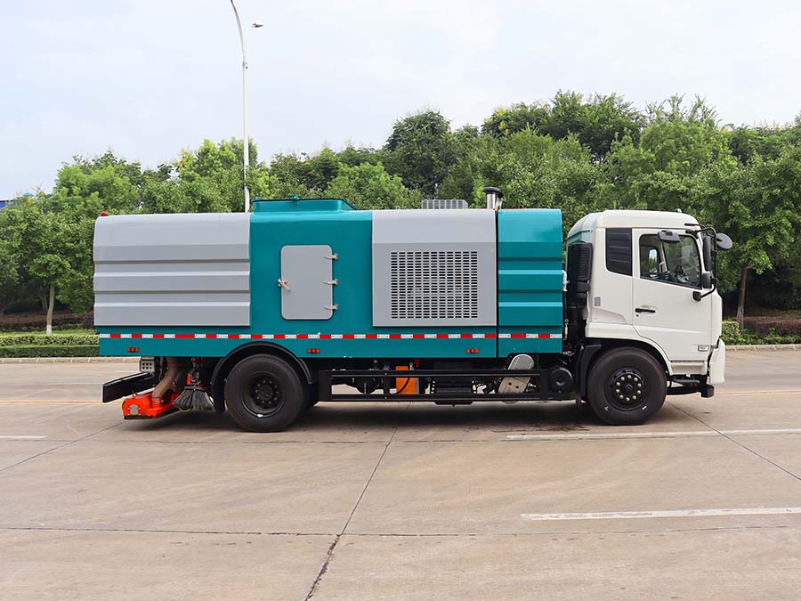 隨底盤選裝駕駛室;整車長/軸距對應關系(mm):8700/5300,8400/5000,8100/4700;側防護裝置材料為Q235,螺栓連接;后防護裝置材料為Q235,焊接連接,截面尺寸為:120×50(mm),離地高度為:500(mm);ABS型號/生產廠家:3631010-C2000/東科克諾爾商用車制動系統(十堰)有限公司,ABS 8/東科克諾爾商用車制動系統(十堰)有限公司,4460046450/威伯科汽車控制系統(中國)有限公司,J ABS/焦作博瑞克控制技術有限公司;該車專用裝置主要由箱體、吸盤組成,用于路面吸塵作業(yè).